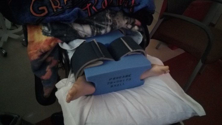 His nemesis is his hip abductor pillow that holds his legs in place. His legs are basically strapped to it and he has been in it since his surgery. He’ll have to use it a lot for at least the next few weeks, which I know he’ll be frustrated with. But usually when he’s feeling good, he can deal with it. When he’s not feeling good, it may feel his wrath…in words anyways.