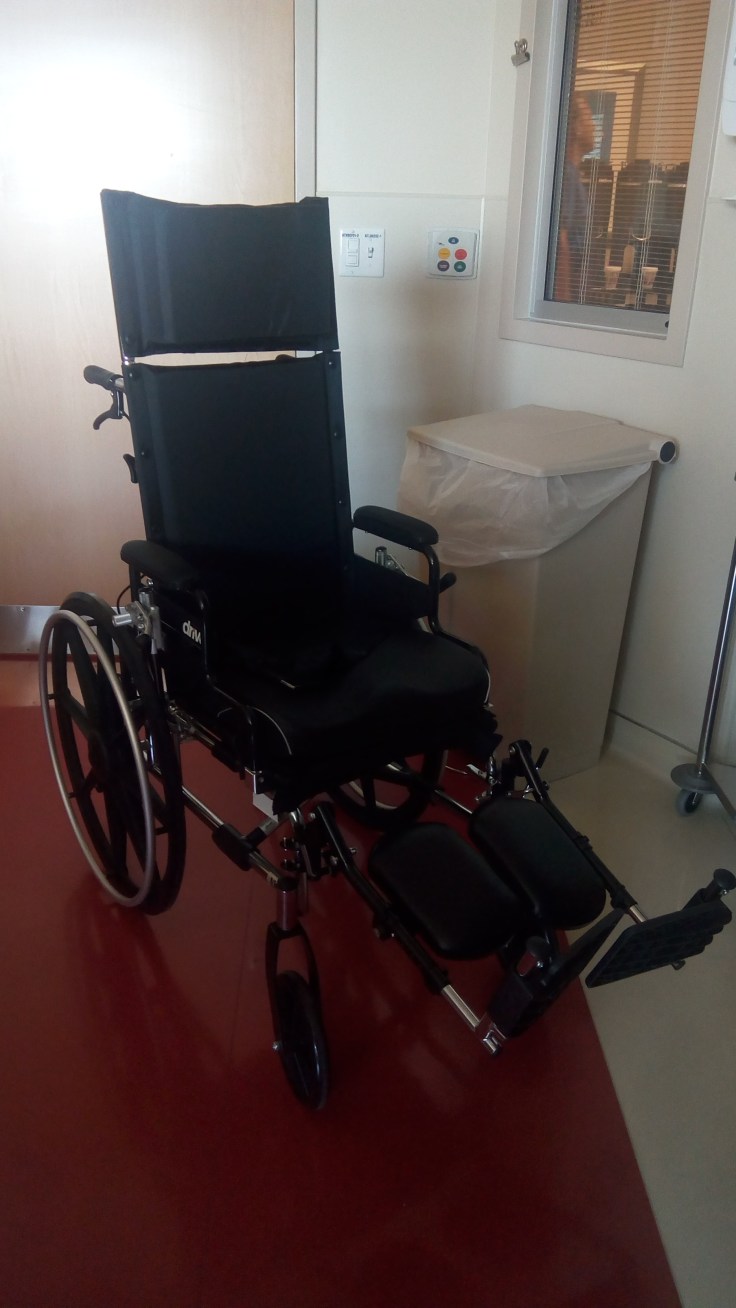 At some point earlier in the day we got to exchange our wheelchair. The one the company had originally sent us was not the right one that he needed so we brought that wheelchair here and they did an exchange for us and got us the correct wheelchair. It’s kind of like going from a Honda Civic to a Cadillac. It will take up more room and be heavier, but it will work much better for him so we are glad about that. Though because this one is a different size the custom cushions that Julie made for his last one won’t work. Sorry Julie!