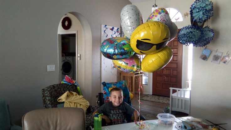 After we came home, we got a knock on the door with a special delivery for Elijah. Our good friend Mrs. Chickie had sent Elijah a bouquet of balloons with a wonderful note. That was a great surprise, especially considering we told him that we weren’t going to open any presents today.