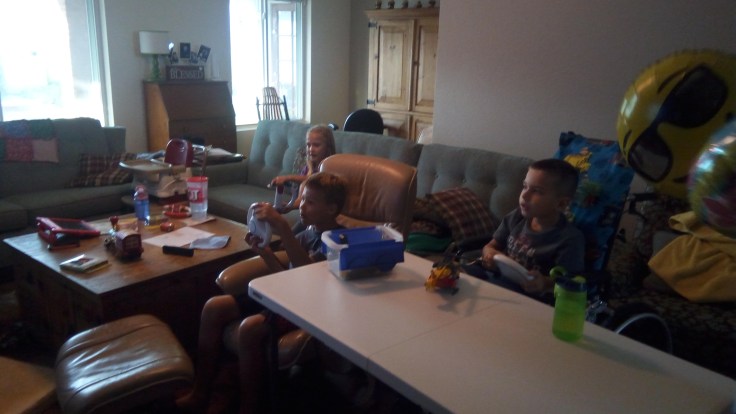 After rest time, we played a little Mario Kart and then some more friends of ours, the Kary’s, stopped by to drop off some dinner for us, which was delicious by the way! Elijah had some new racing partners for a while too which gave him a break from having to race mom and dad.