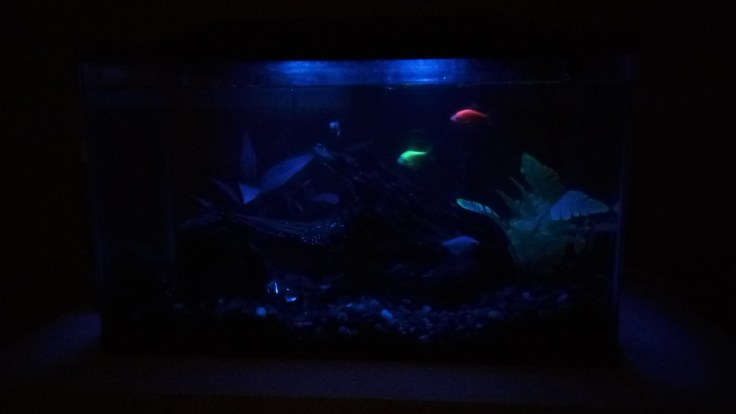 A a few of the fish are GloFish too, so they’ll glow at night in his room.