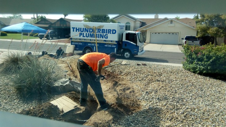 The plumber showed up in the morning and got to work right away. They had to dig a whole new trench by hand, so they didn’t wait too late in the day to start on that since it’s so hot. When it was all said and done, it took them close to 4 hours to dig the trench, lay the new pipe, and get everything connected. We are glad that’s done and our bills should go back to normal.