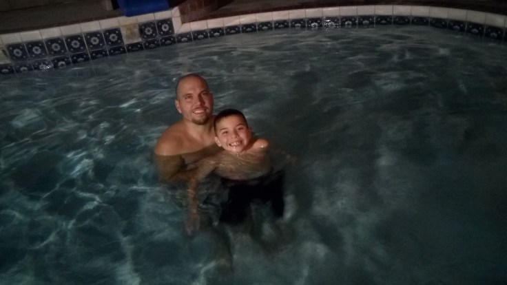 After dinner, we decided to take a dip in the pool. Elijah seemed more comfortable with it this time, though the water was a little bit colder, so it took him longer to get all the way in. Still once he did, I left him alone for the most part, and he did really well getting himself around. He’s still moving quite awkwardly, but that is to be expected. He mentioned that his toes we’re hurting, but I think it’s because he’s mostly walking on his toes in the pool. I’m not sure how much he’s actually putting his heels down or resting on his entire foot. And since his feet haven’t been getting a lot of action lately, I think everything feels different and he’ll probably get sore easier. He also mentioned like last time, that the ground felt wobbly or bumpy. Again, after asking him some questions about it, I think it’s just the feeling in his feet after not walking for a long time. He did seem to have fun in the pool, and we got to play some of the pool games we used to play before his surgery. I can see that he’s getting more comfortable doing some things with his legs in the pool, but I can also see it’s going to take a lot of work to get him back to where he was. We’ll get there though!