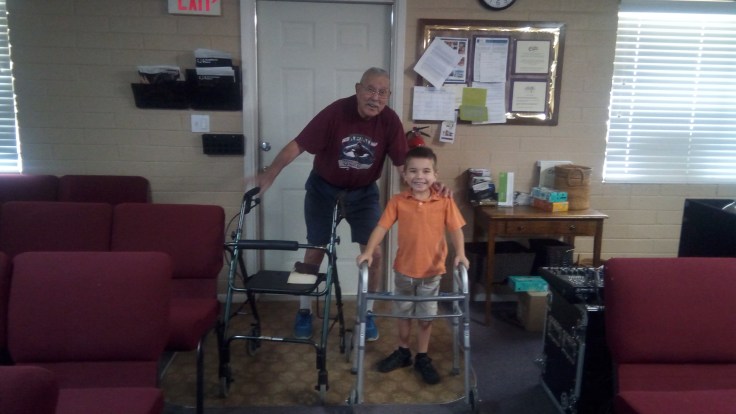 I don’t have a lot to share today, wanted to get on here to share a picture with you guys. This morning we went to church, and let Elijah use his walker. We have a good family friend at church, named Tito, who also uses a walker. So today, they were walker buddies!