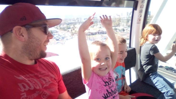 Next, we went to the special exhibit on King Tut, but that one was a bit scary for Elijah. After we finished with the exhibit we found a spot to sit and eat our lunch. Then, we got our ride coupons and started looking for which ones we wanted to do. Elijah’s top choice was to do one of the big slides, which he had done last year. He went with some of his friends, though he had a hard time making it up all of the stairs to get to the top of the slide. Just to clarify, he could make it to the top, but it was a slow process, and difficult because the kids had to carry up a mat while climbing the stairs. This man is about as big as Elijah is, and since he already had a hard time walking without holding onto the rails, it just added to the difficulty. Another girl, we don’t know, helped him carry his mat up to the top, which was really nice of her. His friends are the first ones down in this video, and then he’s the last one down on the green slide right in the middle. I’m afraid it wasn’t as fun this time, because he got a little wobbly coming down and tried to steady himself with his hands. In doing so he ended up burning one of his hands from the friction. He was hurting pretty bad after he came off of that ride and had some skin peeling off his palm, which took him a little while to get over.
