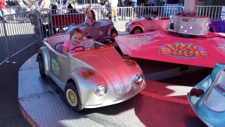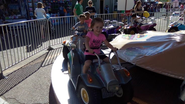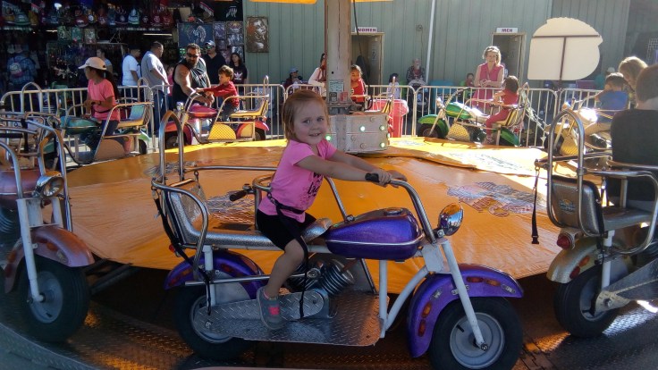 After this, Elijah still had one more ride, but Abigail had a few. She was much more limited in the types of rides she could go on, so I took her to go find some rides she could do, and Julia stayed with Elijah and our friends to finish off his pass. Here are a few pictures of Abigail riding her rides.