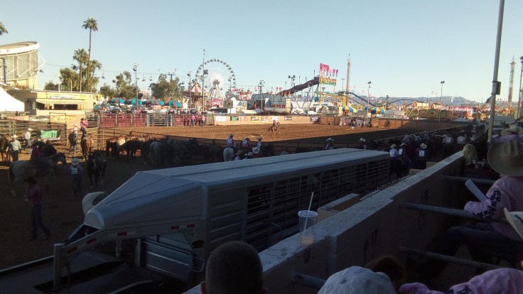 After we were done with our rides, we separated from our friends and went over to the arena where they were doing some high school rodeo. We watched a bit of goat roping and bull riding.