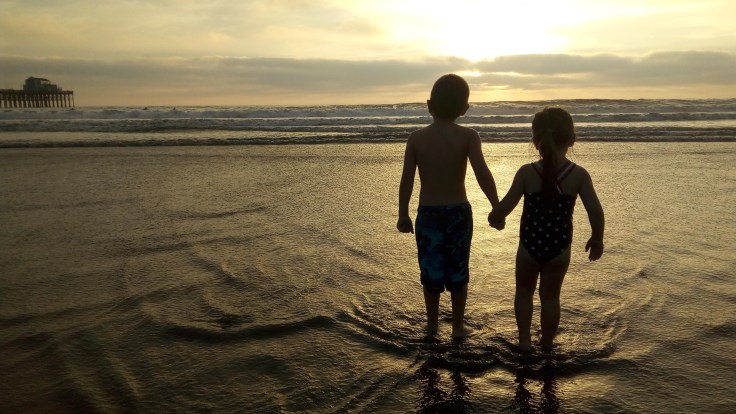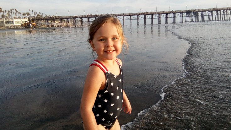 We packed up the van and on Sunday morning headed out to California. We wanted to get there as early as we could not only so we could find our way in the light, but also so we would hopefully have enough time to go to the beach that evening. We made it there late afternoon, and after checking into our hotel, went straight to the beach. Our hotel was only about 1 mile off of the beach, so it was very close. We didn’t walk to the beach from the hotel, but drove over and parked in some metered parking close by. It has been probably four years since Elijah had been to the ocean, and he didn’t remember it. This was Abigail’s first time ever going to the beach, so it was completely new for her. They were both a little uneasy right at the start, but didn’t take long till they were playing in the water and sand.