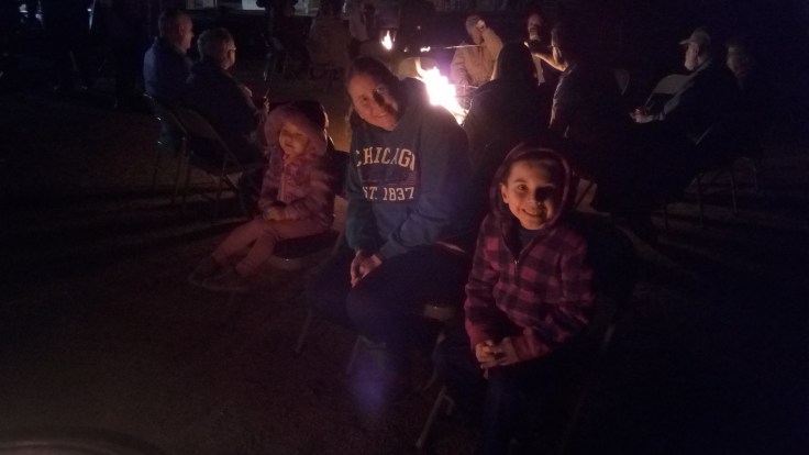 Last night, we went to an event hosted by a church near our home, where the kids got to roast marshmallows and have hot chocolate by a fire. Abigail didn’t want to sit too long, so she went off to play in an field while I followed. Julia and Elijah stayed warm by the fire, and sang Christmas songs with the others.